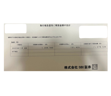 - 売却後:税金が引かれた金額が入金される(2〜3営業日後)。